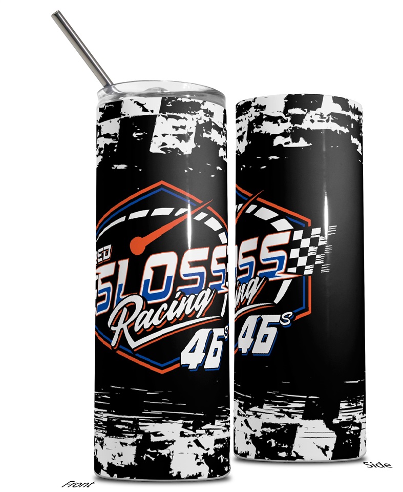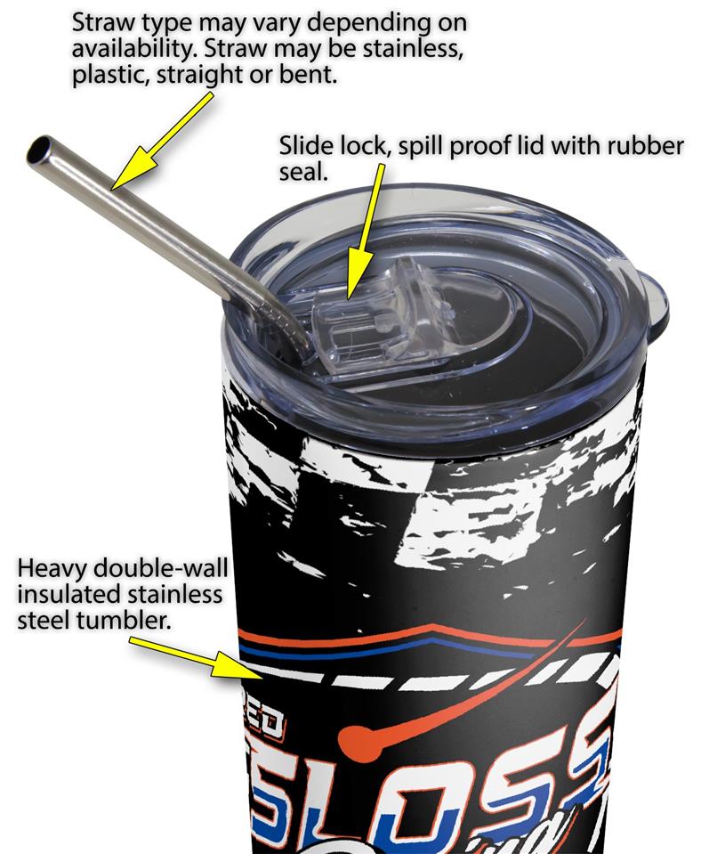 20oz Tumbler Stainless Steel, Double Wall Insulated, Straw, Spill Proof Lid Jared Sloss Racing